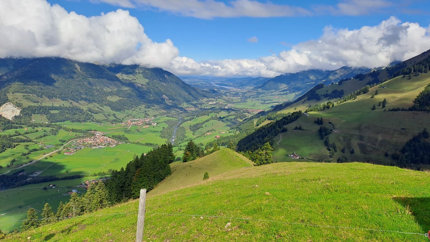 Verteilt auf die Kantone Waadt, Freiburg und Bern erstreckt sich der Regionale Naturpark Gruyère Pays-d’Enhaut von der waadtländischen Riviera bei Montreux bis nach Bulle. Neben steilen Felswänden und tiefen Tälern finden sich auch viele Alpen und Bergwiesen. Die Käseproduktion prägt hier die Region. Wir starten in Montbovon, am Lac de Lessoc, weiter geht es zum Aussichtspunkt bei La Brâ, wo sich das Gebiet der Gemeinde Haut-Intyamon vor unseren Augen ausbreitet. Dem See entlang wandern wir zurück nach Montbovon.