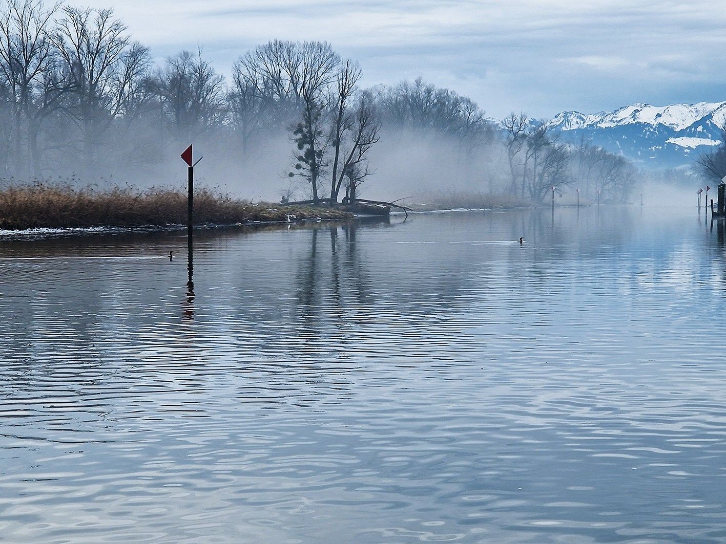 Das Rheindelta zählt zu den bedeutensten Feuchtgebieten Mitteleuropas und ist der Lebensraum unzähliger Pflanzen und Tiere. Jetzt im Januar sind besonders viele Wasservögel hier im Winterquartier (Winterferien). Die grosse Anzahl von Wasservögeln ist überwältigend. Das wollen wir uns ansehen. Mit ungewohnt wenig Auf und Ab gehts auf dem Damm des neuen Rheins zur Lagune. Danach wandern wir dem Bodenseeufer entlang, auf dem Polderdamm, zurück bis nach Gaissau und Rheineck.