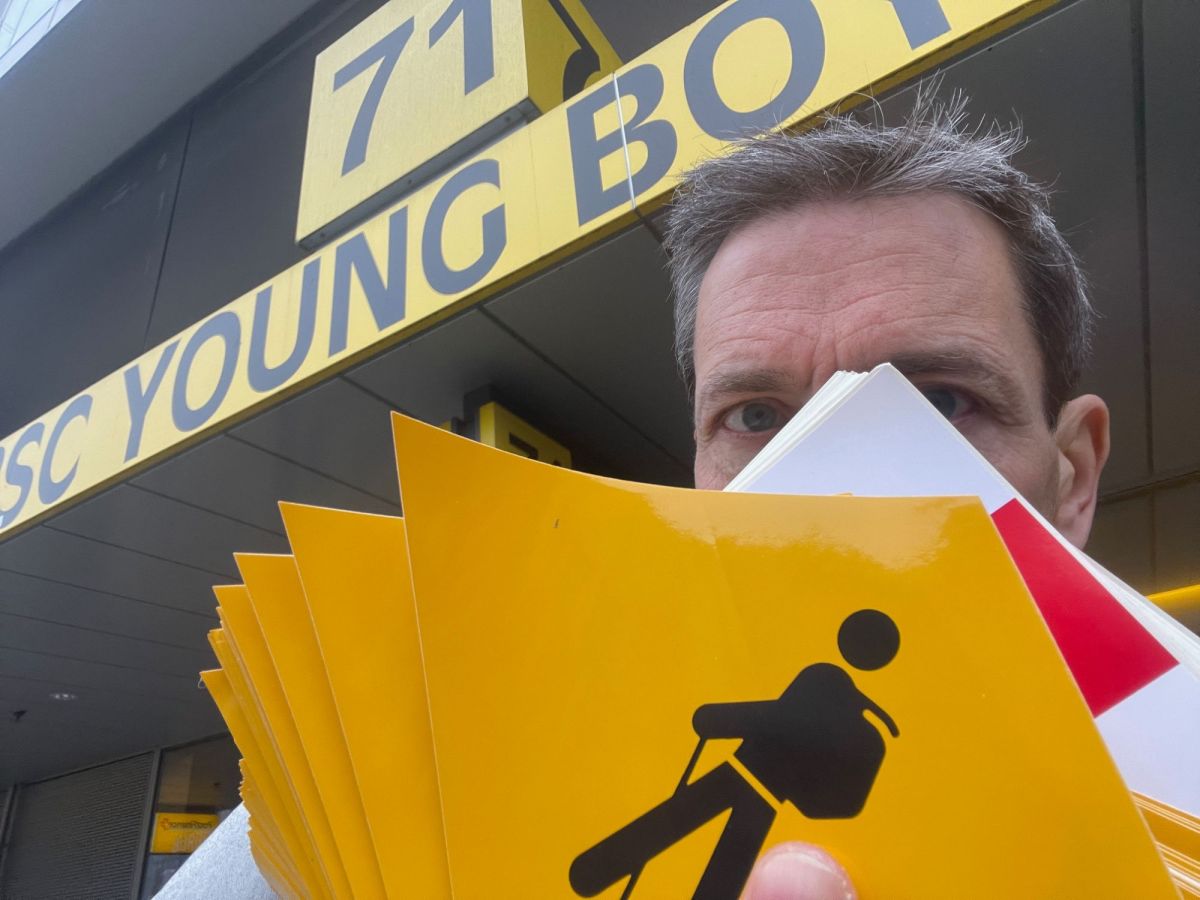 Im vergangenen Frühling wollte ich eure Erfolge feiern und zog los, johlend und mit Pyros die Wanderwege einräuchernd. Ich begann in Arlesheim im Baselbiet und wanderte Richtung Gempen, als meine Ausgelassenheit jäh endete: Da habt ihr doch wirklich mit euren FCB-Stickers unsere gelben Wegweiser verklebt! Sofort löschte ich meine Pyros und hörte mit dem Feiern auf.