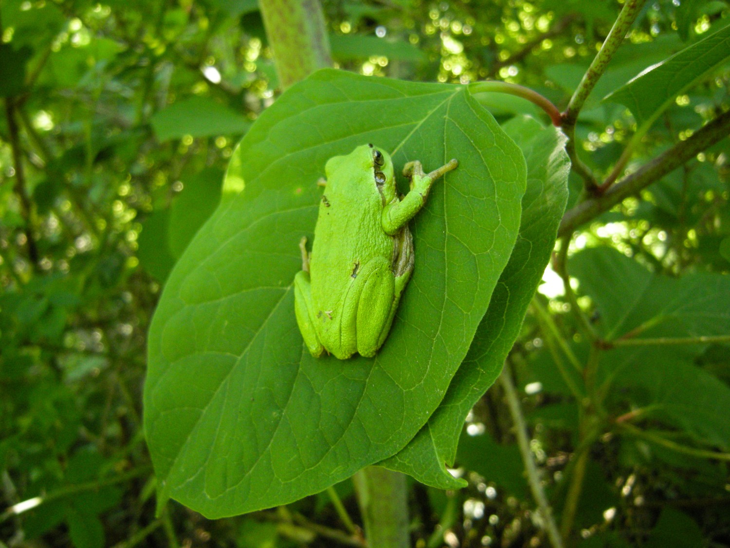 Tagsüber an Land, abends im Wasser: Der Laubfrosch ist ein vielseitiger Jäger. Bild: Emanuel Egger.