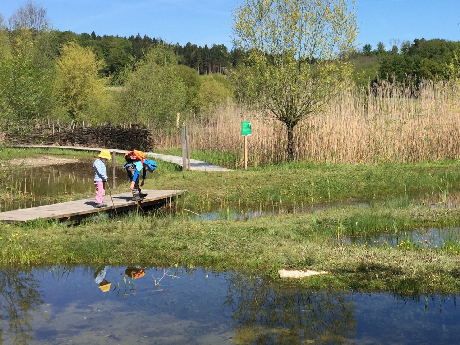 • Am Ziel angelangt: Im Auried lässt es sich gut verweilen. Wer sieht die meisten Frösche? Bild: Rémy Kappeler