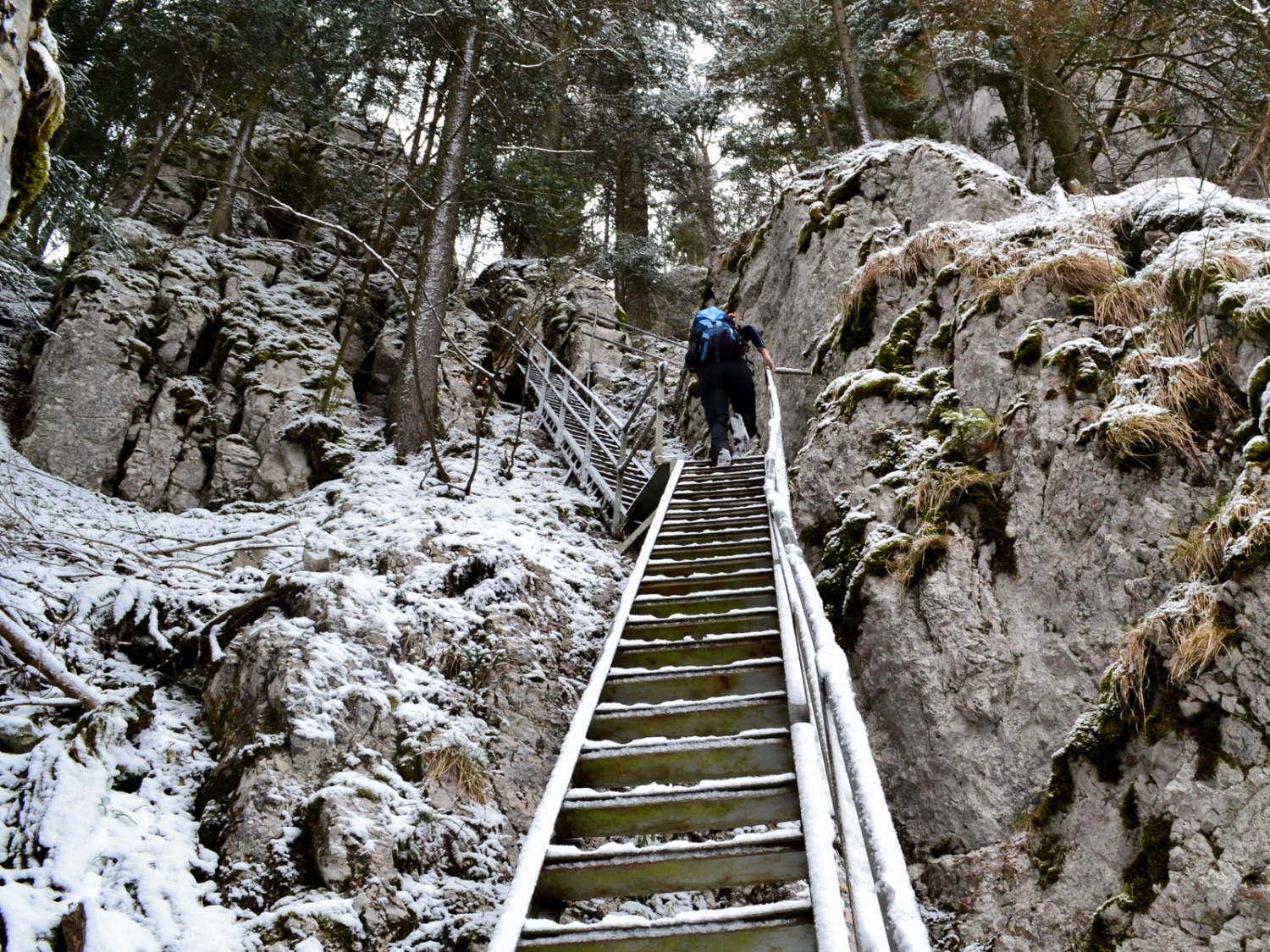 Kalte und entsprechend kurze Rast unter einer mächtigen Buche. Foto: Sabine Joss.