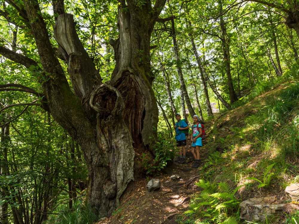 Der Wald im Lodanotal war früher mal keiner. Dann wuchs er, wurde aber lange Zeit schonungslos gerodet. Seit fast 50 Jahren wird er nun in Ruhe gelassen, ist heute ein Naturreservat und in Zukunft vielleicht schon bald ein UNESCO-Welterbe. Wer durch den Wald ins Tal hineinwandert, erlebt eine grosse Vielfalt an Bäumen. Und kann im Herbst Kastanien sammeln. Die Rundwanderung beginnt an der Bushaltestelle und führt ins Dörfchen Lodano. Bei der Kirche wird rechts abgebogen Richtung Ronchi mit seinem kleinen Weingut. Bald zeigt der Wegweiser Richtung Solà, der Aufstieg beginnt entlang einer langen Trockensteinmauer. Solche trifft man immer wieder mitten im Wald an - sie wurden gebaut, als das Land hier noch Weide war. Damals wurden sie aus Steinen erstellt, die beim Mähen im Weg gelegen wären, und hinderten das Vieh am Weglaufen. Es geht weiter aufwärts, in Solada d'Zott wartet ein Weiler mit typischen Tessiner Häusern, deren Pergolen im Herbst voller Trauben sind. Beim Aufstieg trifft man immer wieder auf ehemalige Köhlerplätze und auf Spuren von Drähten, die früher ins Tal hinabgespannt waren. An diese Bordions genannten Seile hängten die Arbeiter Astgabeln, daran Baumstämme und liessen beides runtersausen. So rodeten sie bis Mitte des letzten Jahrhunderts für die Holzproduktion riesige Waldflächen. Bei Solà geht es weiter Richtung Canigèe, später Castello. Mächtige Kastanienbäume und Buchen säumen den Weg, der bei Castello die Talseite wechselt und wieder nach Lodano hinunterführt. Kurz davor, bei Predagrossa, verlässt man den markierten Wanderweg nach links und wandert einer Trockensteinmauer entlang wieder in den Wald. Bald trifft man auf einen nachgebauten Köhlermeiler und auf einen Bordion - beide veranschaulichen die Vergangenheit. Bei Scaleta kann man über das Strässchen Richtung Osten den Weg zur Bushaltestelle abkürzen.