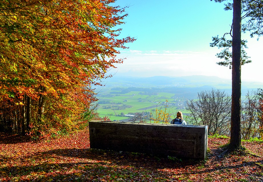 • Auf dieser Aussichtsbank am Imebärg hätte eine ganze Wandergruppe Platz. Bilder: Sabine Joss