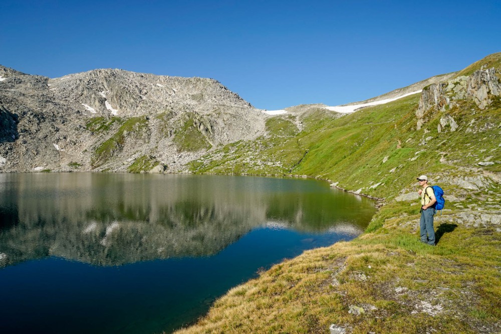 Der erste Postautokurs ab Ulrichen in Richtung Nufenenpass fährt zeitig am Morgen. Auf der Passstrasse geht es noch erstaunlich ruhig zu und her. Motorräder werden wohl später folgen, wenn sich die kühle Luft, die sich im Goms auch während Sommernächten einstellt, ein wenig erwärmt hat. Wer beim Ladstafel schon wieder aussteigt, hat meistens etwas Grösseres vor, zum Beispiel die Wanderung übers Brudelhorn. Vor dem Start kann man sich beim Alpgebäude noch mit Käse ausrüsten. Danach führt der Bergwanderweg über die Steinbogenbrücke aus dem Jahr 1761 und ins Lengtal hinauf. Links oben beim Griessee drehen die vier Rotoren der höchstgelegenen Windenergieanlage Europas. Hinten im Lengtal wird der Weg steiler und durchquert eine karge Urgesteinslandschaft. Rundgeschliffene Steinbuckel, Geröllfächer, dazwischen feuchte Ebenen mit Wollgras, sprudelnde Bäche und spiegelnde Bergseen, wie der grosse Distelsee, bieten reizvolle Anblicke. Wunderbar ist der Blick vom Brudelhorn das ganze Goms hinauf und hinunter, sowie auf die mächtigen Gipfel ringsum, etwa zum Galenstock, Finsteraarhorn oder Aletschhorn. Der Abstieg erfolgt kurz auf dem felsdurchsetzten Rücken des Distelgrats, dann über groben Blockschutt, wo auch kurz die Hände zum Einsatz kommen, zu kleinen, namenlosen Seen hinunter. Auf dem nächsten Abschnitt bis zum Follebode sind die Wegspuren meist nur undeutlich und auch nur spärlich mit Farbe markiert. Bei guter Sicht ist die Route aber trotzdem einfach zu finden. Vom Follebode nach links bis Schossmatte ist die Wegspur noch immer kaum zu sehen. Danach führt ein besserer, dafür aber recht steiler Pfad durch Grünerlen und lichten Lärchenwald hinunter zum Staubecken bei Chäller. Auf der linken Seite des Merezebachs steigt der Bergweg ab nach Oberberbel und weiter zum Bahnhof Münster.