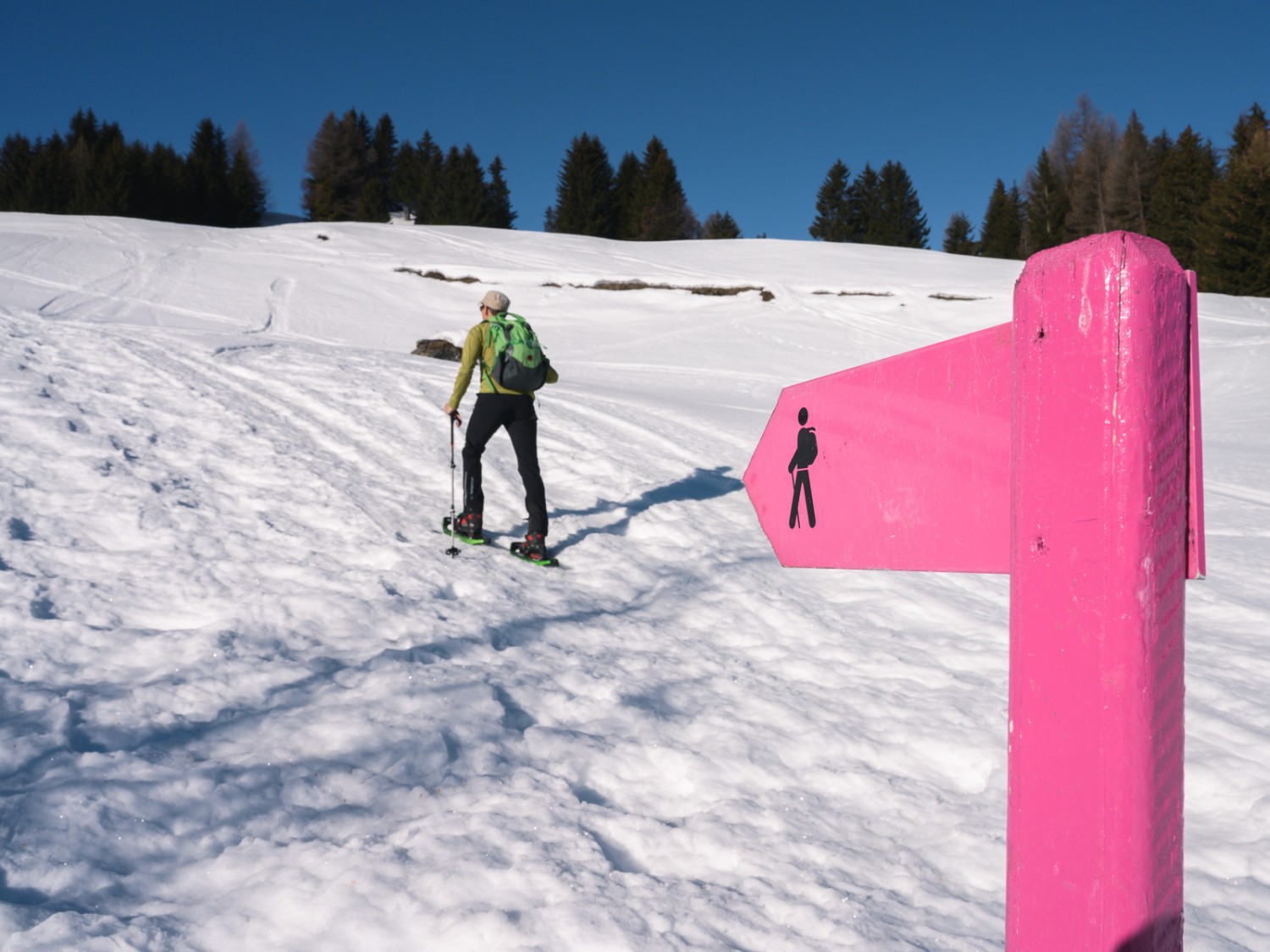 Wenn der Schnee fällt, heisst es: Bühne frei für die pinke Signalisation, die durch diese gemütliche Wanderung führt. Als Schauplatz dient das verschneite Surses, ein Seitental des Albulatals. Zu den Hauptprotagonisten gehören drei kleine Dörfer, Cunter, Salouf und Riom, und ein Fluss, die Julia, auf Rätoromanisch Gelgia. Die Winterwanderung beginnt bei Cunter, nahe Savognin. Die Burg von Riom ist bereits von Weitem zu erkennen. Doch der Bogen spannt sich: Man wählt nicht den direkten Weg hinauf, sondern bleibt auf dem Talboden, geht von der Kirche von Cunter den Weg links, der zur Julia führt, und folgt ihr flussabwärts in Richtung Salouf. Nach einer kurzen Passage durch das Industriegebiet geht es über eine Brücke auf die andere Seite des Flussufers. Beim Kieswerk am Stausee Lai da Burvagn biegt die Route nach links ab. Hier beginnt der sanfte Aufstieg nach Salouf. Historische Bauten prägen das Ortsbild des Dorfes. Szenenwechsel: Der Weg macht eine Linksschlaufe durchs Dorf und präsentiert im nächsten Abschnitt, was bisher hinter einem lag. Eine neue Aussicht auf die umliegende Berglandschaft und mittendrin das Dorf Parsonz. Auf einer Bank lässt sich diese Szenerie genauer betrachten, bevor es in Richtung Cunter nach Riom geht. Am oberen Dorfrand befindet sich die gemütliche Ustareia Taratsch, die lokale Spezialitäten in Szene setzt. Im Café Carisch folgt die Zugabe, im Rampenlicht der Zuckerbäckerei steht feine Patisserie. In der Burg von Riom gehen ebenfalls manchmal die Scheinwerfer an. Denn die dramatische Kulisse der rund 800-jährigen Festung wird während des Origen Festival Cultural zur Bühne für Musik, Tanz und Theater – Vorhang auf!
