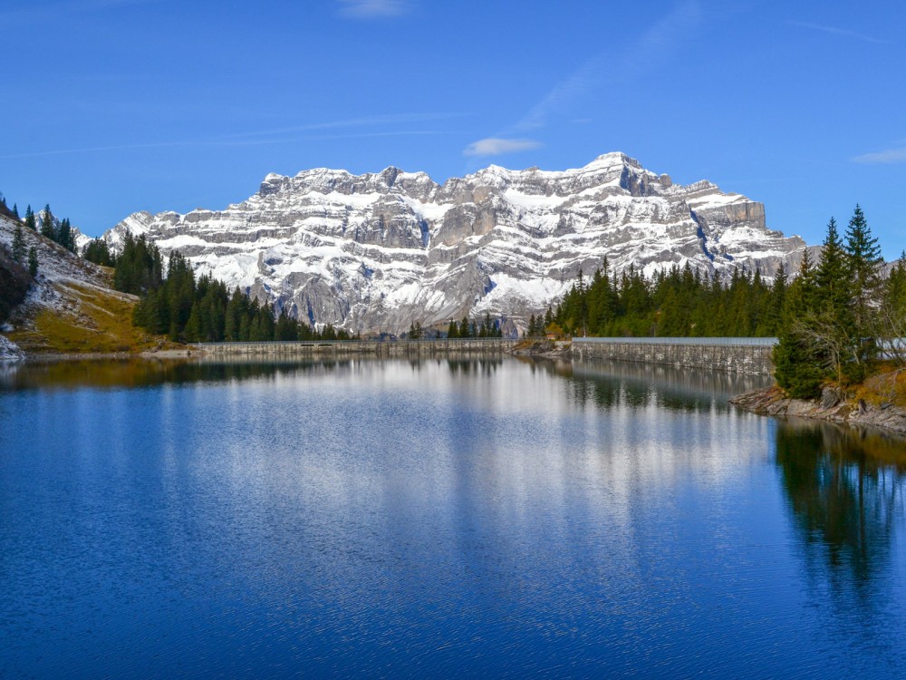Glärnischmassiv mit Vrenelisgärtli über dem Mettmenalpsee. Bild: Sabine Joss.