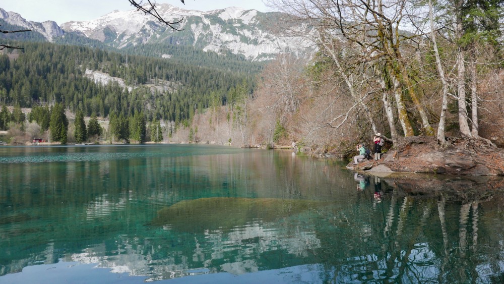 Der Caumasee fasziniert mit seinen vielen verschiedenen Blautönen und bietet ideale Rastplätze..