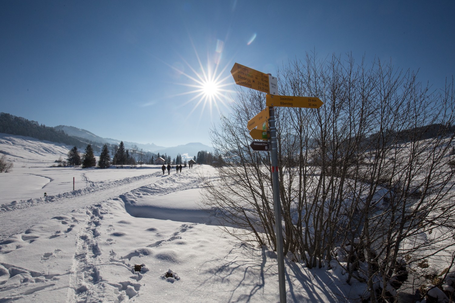 Fluss oder See? Wer sich nicht entscheiden mag, ist bei dieser kurzen Uferwanderung gleich doppelt bedient. Deshalb Badesachen einpacken und los gehts: Ausgangspunkt ist Boudry. Wie bei vielen Ortschaften auf der nördlichen Seite des Neuenburgersees prägen auch hier Rebberge die Landschaft. Die Route startet gleich hinter der Haltestelle «Boudry Littorail» an der Areuse, einem der Hauptzuflüsse des Neuenburgersees. Nach einem kurzen Stück flussabwärts führt eine Brücke auf eine kleine Halbinsel. Diese gehört zum Landschaftsschutzgebiet «Zone naturelle du Pervou», das als Erholungszone und Ausgleichsfläche angelegt wurde. Informationstafeln geben Auskunft über die Biodiversität des Parks – beispielsweise über den Teich, die Fauna und Flora oder die Fischtreppe. Mittendrin ist das Restaurant La Maison du Pervou. Unter dem Autobahnviadukt geht es ein zweites Mal über die Areuse. Entlang des Ufers spenden die Bäume viel Schatten, und der See rückt immer näher. Kurz vor der Mündung zweigt der Weg nach links ab zum Plage de Boudry. Und plötzlich liegt er vor einem, der grösste, komplett in der Schweiz liegende See – der Neuenburgersee. Gleich vier Kantone teilen ihn sich: Freiburg, Waadt, Bern und Neuenburg. Auf dem Sentier du Lac folgen nun immer wieder Plätze zum Baden oder Verweilen, wie etwa der Plage de Colombier. Das zurückhaltende Rauschen der kleinen Wellen, die rasch wieder in den Kieselsteinen verschwinden, vorbeifahrende Kanus oder kleine Strände lassen Ferienstimmung aufkommen. Wer dabei Hunger bekommt, ist in Auvernier – dem Ziel dieser Ge- nusswanderung – in der Brasserie du Poisson gut aufgehoben. Zu einem Glas Neuenburger Wein werden Fisch- und Brasseriegerichte serviert.