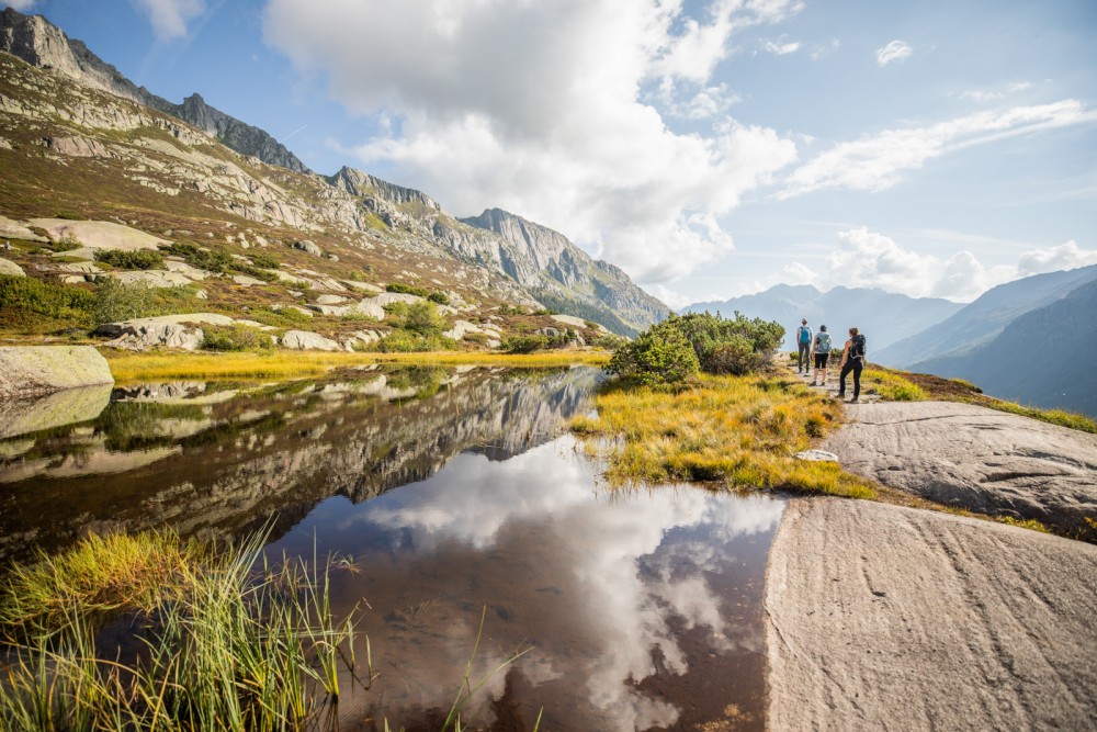Die Region zuhinterst im Bavonatal ist reich an Seen, mit einer vielfältigen Tier-, Pflanzen- und Mineralienwelt. Auf 1890 Metern lässt sich eine prächtige Aussicht auf den Gipfel des Basòdino, sowie auf das ganze Tal geniessen. Mit der Seilbahn von San Carlo in Robièi angekommen, geht es zunächst links auf einem Pfad zum ersten Aufstieg, welcher entlang eines Baches auf eine Hochebene führt. Dort wandert man nach dem Überqueren des Bergbaches auf einigen Steinen zum Ende dieser Ebene, um bei einem See rechts auf einem Alpinwanderweg in Richtung Lago dei Matörgn abzubiegen. Im Banne des Ghiacciaio del Basòdino, dem grössten Gletscher im Tessin, geht die Wanderung über Stock und Stein auf einem Bergwanderweg weiter, bis man nur wenig unter der Bocchetta di Val Maggia bei weiteren Bergseen ankommt. Besonders auf diesem Abschnitt lassen sich die Rundhöcker und Walrücken der vergangenen Gletscherüberdeckung gut erkennen. Ein weiterer kleiner Aufstieg über steiniges Gelände führt zur Grenze zwischen der Schweiz und Italien. Nur wenigen Leuten begegnet man hier, man ist gefühlt und auch wortwörtlich am Ende der Schweiz. Um einen besseren Ausblick auf die Seenlandschaft der italienischen Seite zu haben, empfiehlt sich für trittsichere Wandernde, beim Pass noch ein wenig hochzuwandern. Für den Rückweg über den Lago del Zött biegt man kurz nach dem kleinen Seelein unter der Flanke ab. Im Valletta di Fiorina wandert man zurück und hält sich beim Anfang des Alpinwanderwegs wieder rechts. Der anschliessende Abstieg zum Stausee Lago del Zött erfolgt in einem steilen Zickzack und führt anschliessend auf der rechten Seite der Staumauer entlang und auf Hartbelag zum Ausgangspunkt Robièi.