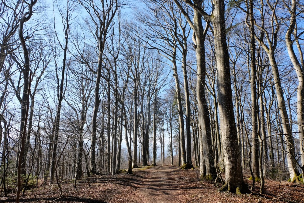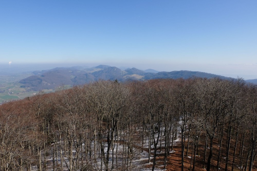 Nach der Ankunft in Bad Ramsach führt der Weg durch Buchenwälder den Berg hinauf zur Hasmatt. Kurz darauf erreicht man den höchsten Punkt des Wisebergs auf 1001 Metern mit seinem Aussichtsturm. Die 128 Stufen lohnen sich. Panoramatafeln helfen, die Berge zu benennen.