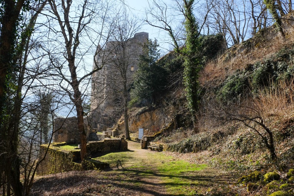 Zurück in Bad Ramsach wäre die Wanderung zu Ende, wäre da nicht die nahe Burgruine Homburg, die einen Besuch lohnt. Knapp einen Kilometer geht es auf der Strasse Richtung Läufelfingen. Dann betritt man wieder Wald. Ein schöner Weg führt hinunter zur Ruine mit ihrem Turm, dem zweiten auf diese Wanderung. Nach Läufelfingen ist es nun noch ein Katzensprung.