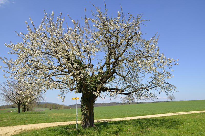 Die Kirschblüte erfreut den Wanderer im Frühling. Bilder: Dres Balmer.