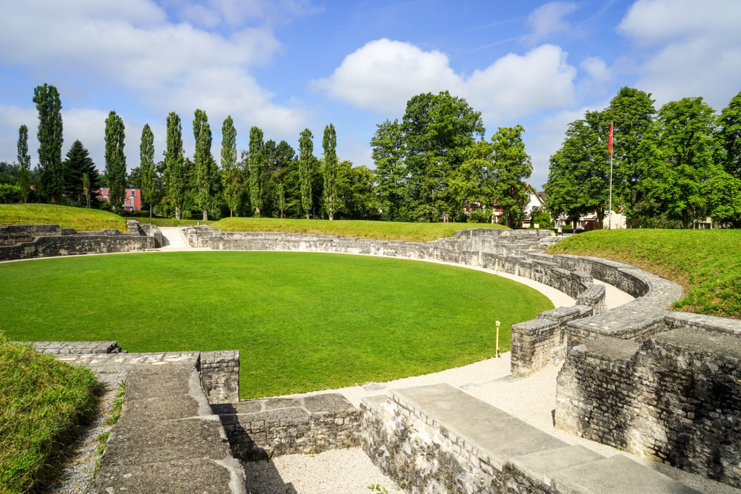 La randonnée commence par un voyage dans le temps, de l’époque actuelle à l’Antiquité. Le campus moderne de la Haute école spécialisée de la Suisse du Nord-Ouest, situé à la gare de Brugg, est plein de vie, de restaurants et de magasins. Quelques rues plus loin se trouvent les fondations de l’amphithéâtre romain de Vindonissa, qui pouvait accueillir près de 10 000 personnes. Au-delà de l’étonnement, un sentiment mitigé peut prévaloir puisqu’ici se tenaient surtout des combats d’animaux ou de gladiateurs. Les 40 premières minutes du parcours jusqu’à Dägerli, derrière Windisch, s’effectuent sur un revêtement dur, qu’il est possible d’éviter en se rendant en car postal de Brugg (ligne 363, direction Mellingen) à Windisch, Dägerli. D’ici, le sentier pédestre longe la Reuss dans un décor sauvage. Les rives sont creusées et des arbres gisent dans l’eau. Peu avant le pont de Birmenstorf, le restaurant Müli invite à une pause au bord de l’eau. Le magasin bio d’une ferme de Birmenstorf permet de compléter le pique-nique. Au-dessus du village, le sentier s’élève dans le vignoble. L’effort est rude par rapport au parcours sur les rives fraîches de la Reuss. Peu après, sur le Baldegg, il reste 170 marches à gravir pour rejoindre le château d’eau, une tour qui dépasse les cimes de la forêt proche. Par temps clair, la vue sur les Alpes et le Jura est magnifique, en particulier sur la chaîne des Lägern, derrière Baden. Le parcours conduit ensuite de Baldegg au Gebenstorfer Horn, un point de vue d’où l’on peut admirer le «château d’eau de la Suisse», le confluent des trois grandes rivières que sont l’Aar, la Reuss et la Limmat. Une descente par le flanc boisé mène assez vite à Turgi.