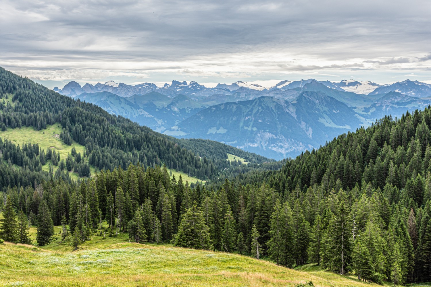 Gfellen, station terminus de la ligne du car postal Entlebuch‑Finsterwald, est le point de départ de cette randonnée dans l’Entlebuch qui offre de beaux points de vue. D’ici, le large dos du Schimbrig, qui, du côté nord, prend la forme d’une paroi abrupte, impose le respect. L’itinéraire ne présente aucune difficulté importante. Par endroits, la montée comme la descente sont raides, mais rarement en des sites exposés. Un charmant sentier forestier tracé à l’écart de la route du col de Glaubenberg, très fréquentée le week‑end, mène à la rivière Grosse Entle et la suit, vers l’aval, jusqu’au pont près de Stilaub. On emprunte d’abord une petite route alpine presque plate. Assez vite, un étroit sentier part dans le sens de la pente, s’élevant par des prairies (parfois très humides) jusqu’à Unter Stettili. Il devient moins raide lors de la montée vers Stettili. Le sentier, presque horizontal désormais, nous fait passer devant une vieille source de soufre presque ensevelie avant de rejoindre Schimbrig Bad. La dernière partie jusqu’au sommet, très raide par endroits, passe surtout par la forêt. Au‑dessus de la Looegg, on rejoint la crête bien large, recouverte d’herbe, d’où l’on a déjà une belle vue sur l’Äbnistettenfluh et le Fürstein. La vue dégagée depuis le sommet du Schimbrig est grandiose! Elle comprend toute la chaîne du Pilate, une partie du lac des Quatre‑Cantons et les Alpes de Suisse centrale. Le retour dans la vallée s’effectue d’abord par le même itinéraire, jusqu’à la bifurcation au‑dessus de la forêt. D’ici, on parvient directement à la Looegg puis, en passant par Chätterech, à la Chnubelalp. La descente se fait plus ou moins parallèlement à la Grosse Entle et permet de rejoindre Gfellen par Wanegg et Brüederen.
