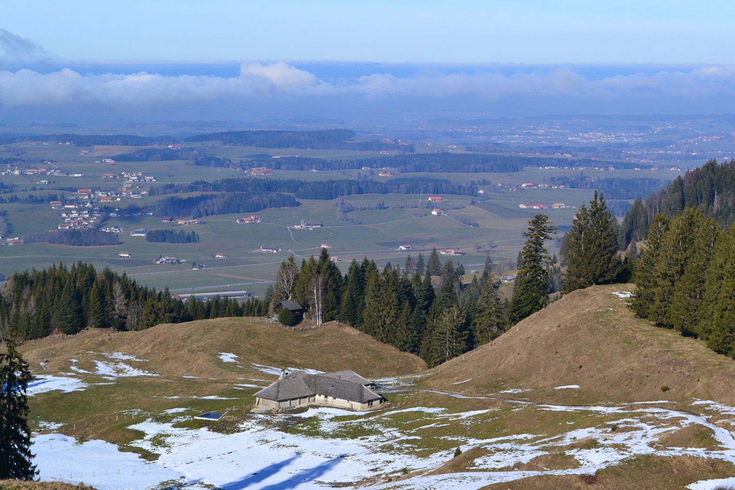 Bâtiments d’alpage aux toits en tavillons à la Mollie Vieille, au-dessus de Semsales. Photos : Sabine Joss.