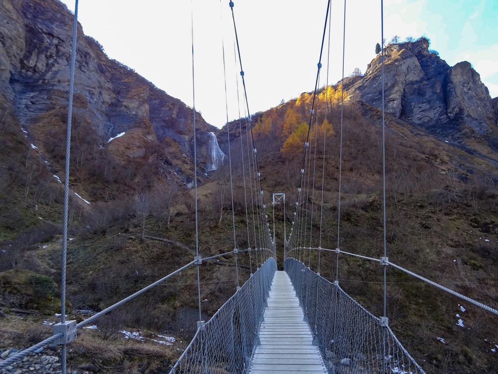 Le pont suspendu surplombe élégamment le Gufelbach..