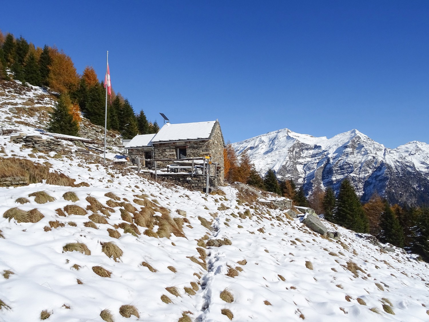 • La cabane non gardiennée Capanna Prou sur l’Alpe di Prou.