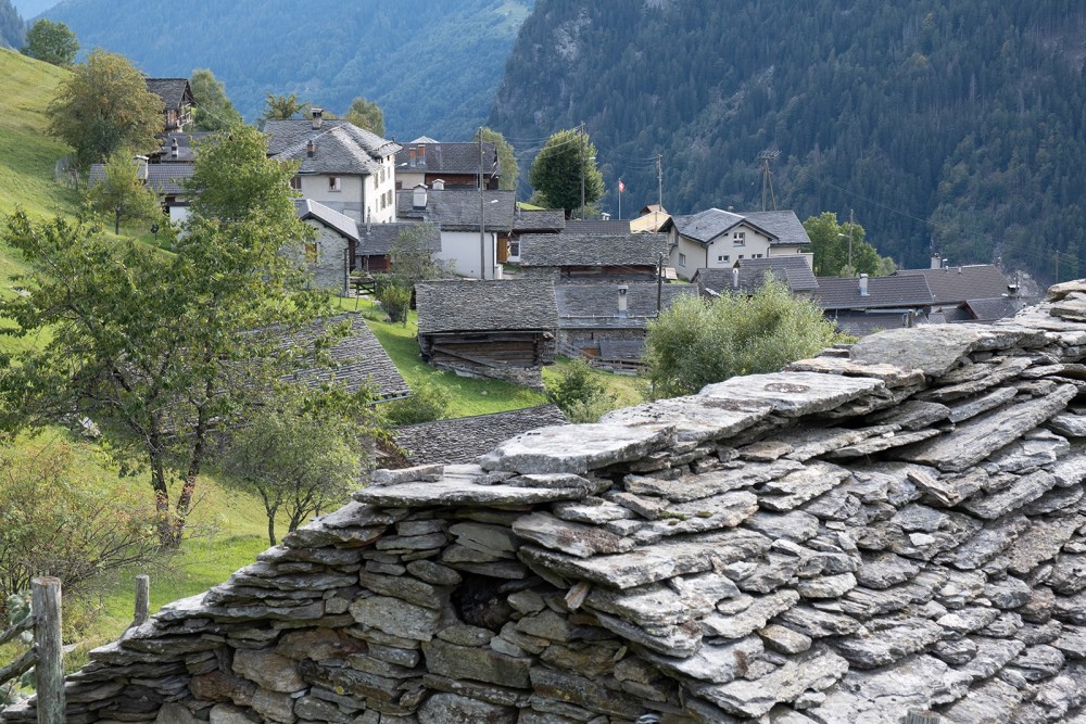 De l’arrêt de car postal Roveredo, Centro, avancer dans le sens de la circulation et tourner à droite après le passage souterrain pour arriver au cœur de la percée verte. A droite de l’hôtel Stazione, la petite rue Scalinàda di Scòl gravit la pente, passe à côté de l’école et mène au quartier San Fedee. L’hôtel Santana y a choisi un très bel emplacement. Juste en face se trouve une superbe châtaigneraie équipée de bancs et d’un chemin pour flâner, ainsi que le Grotto Zendralli. Un peu plus haut, à gauche, la Gardelina monte en quelques pas à peine à l’église de pèlerinage Sant’Anna, avec ses deux ponts en pierre et son ancienne maison de pèlerinage. Un lieu photogénique à l’entrée de la gorge du Val Traversagna.