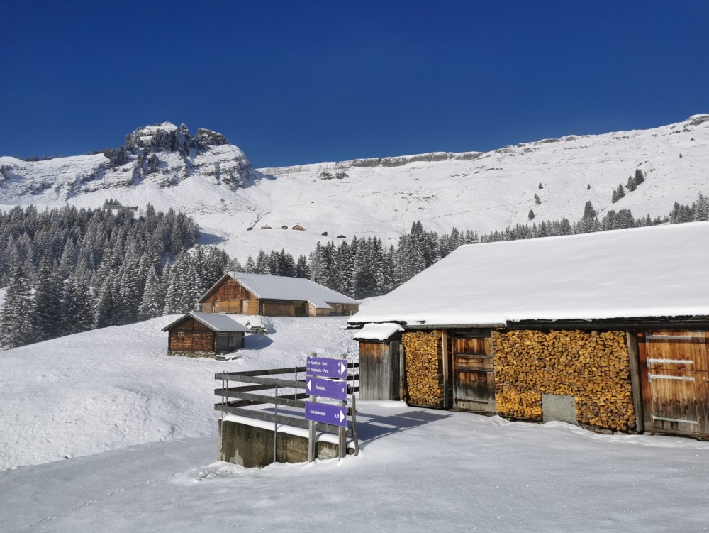 En Suisse, les montagnes aux pentes abruptes et très prononcées sont souvent appelées «Horn», à l’instar des sommets de l’Oberland bernois Wetterhorn, Schreckhorn ou Schilthorn. Le Leiterhorn, en revanche, porte mal son nom. Il domine Wengen, mais n’est en fait qu’une colline boisée, du moins sur son versant sud. Toutefois, il offre un panorama à nul autre pareil. La vallée de Lauterbrunnen s’y étire dans presque toute sa longueur, comme vue du ciel. Les parois rocheuses, dont certaines culminent à 1000 m et ceignent le fond de la vallée, sont particulièrement impressionnantes. La face nord jouit également d’une spectaculaire vue plongeante sur Zweilütschinen et Interlaken. Une piste de raquettes à neige mène à ce fameux belvédère. De Wengen, on traverse d’abord le centre-ville, puis les bois et les pâturages enneigés jusqu’à Flüelenboden, d’où l’on entame la montée en lacets avant d’atteindre l’Äussere Allmend. On poursuit tranquillement la montée vers l’aval pour rejoindre le Leiterhorn. Des bancs invitent à la pause. La descente vers Ausserwengen est d’abord bien raide en bordure de forêt jusqu’au point de vue de la Hunnenfluh. De là, le sentier s’aplanit, puis, un peu plus loin, redescend légèrement vers des chalets brunis par le soleil, avant d’arriver à la gare de Wengen. Si les dernières chutes de neige remontent à quelques jours, l’itinéraire est généralement déjà bien damé par les nombreux randonneurs en raquettes, à tel point qu’il peut se pratiquer aussi avec de bonnes chaussures de randonnée. Si tel est le cas, il est toutefois conseillé d’effectuer le circuit en direction inverse afin de venir à bout du passage relativement raide entre la bifurcation de la Hunnenfluh et du Leiterhorn plus facilement.