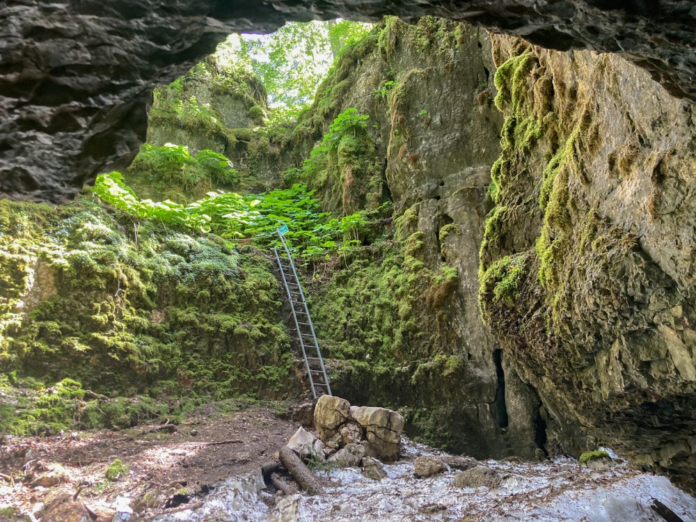 • Depuis la grotte, vue sur l’échelle. Photo: Anna Kocher