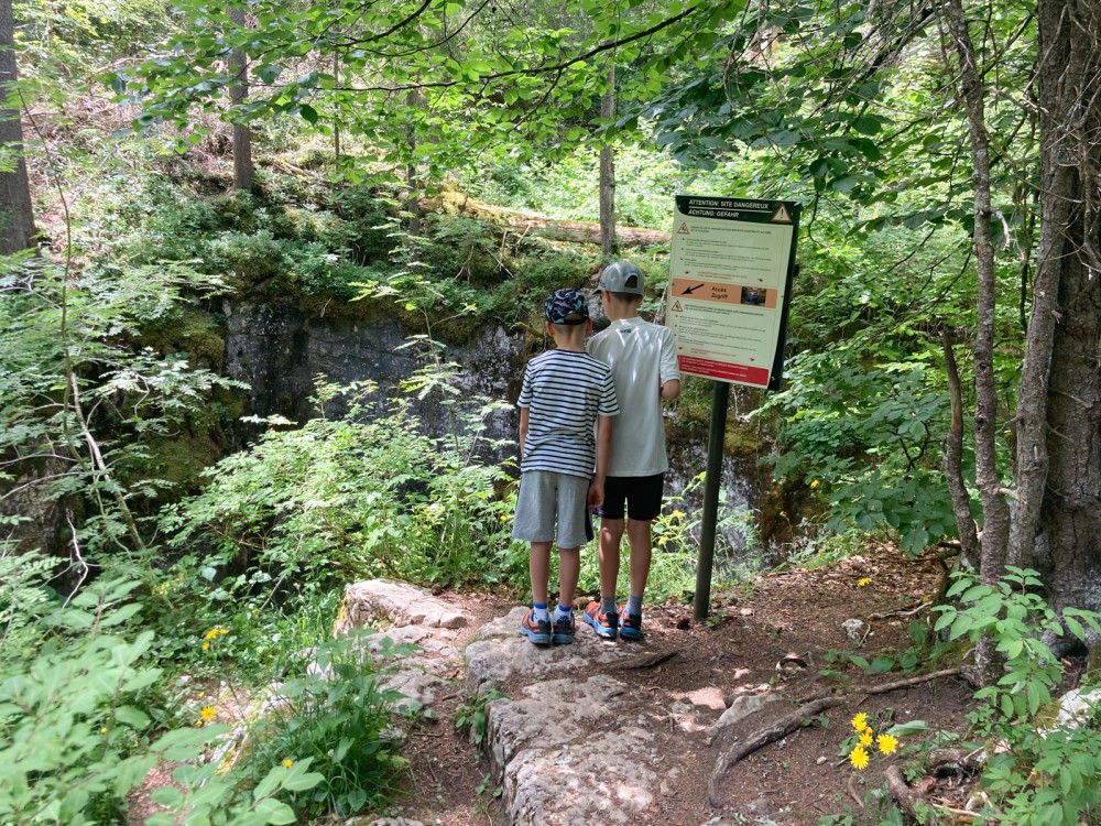 Un premier regard prudent vers le bas, où se trouve l’entrée de la glacière. Photo: Anna Kocher.