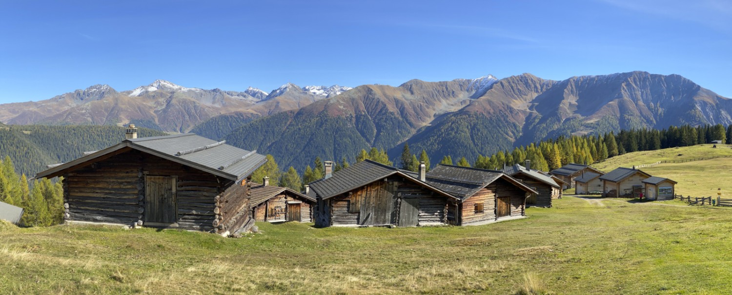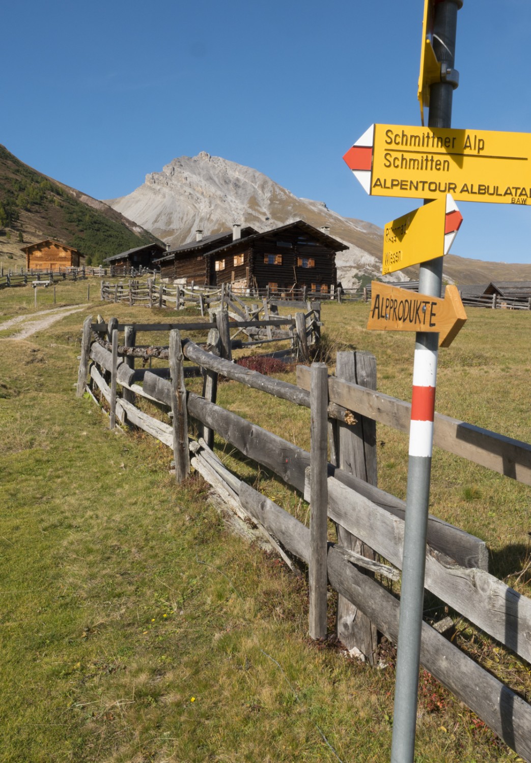 L'alpe Wiesner avec la longue arête du Stulsergrat, au fond à droite le Piz Ela et le Tinzenhorn. Photo: Heinz Staffelbach.
