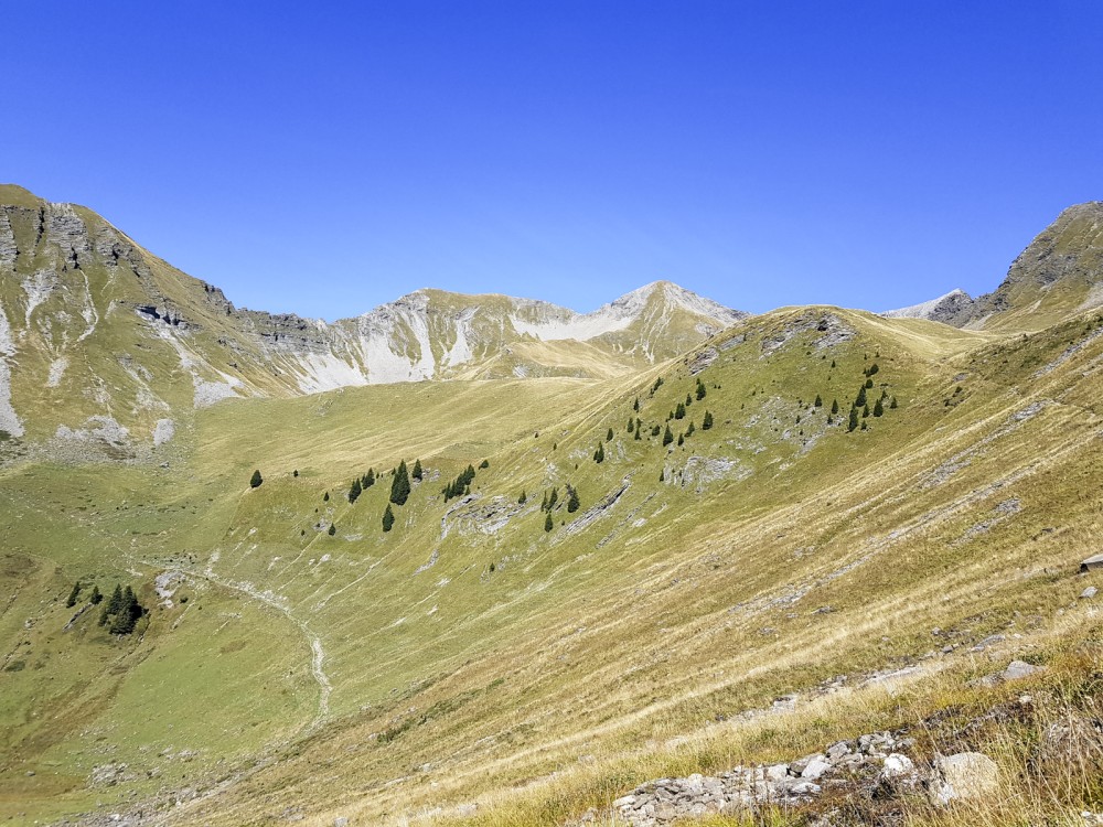 La recherche de la Vogellisi débute sur la Tschentenalp. Sur un chemin qui doit être du goût de cette ancienne herboriste: il passe par une région sauvage et délaissée. Un remède secret contre les genoux flageolants serait le bienvenu sur le flanc sud du Gsür. La randonnée franchit transversalement l’énorme entonnoir du Stigelbach sur la pierre de schiste qui tombe abruptement. L’ascension vers l’Albristhore débute vers la Furggialp, d’abord par un pré raide, puis, à partir du col de Furggeli, par un grand champ d’éboulis. Ici, le sentier n’est plus marqué, et l’on doit faire soi-même des choix à certains endroits. Par moments, il faut également faire usage de ses mains, ce qui n’est pas pour les alpinistes novices. Les efforts dépensés durant l’ascension sont récompensés par le panorama superbe offert par le point le plus élevé de la chaîne du Niesen. La randonnée continue jusqu’au Lavey, sur la crête qui plonge vers Stigelschwand et d’où le parcours effectué est visible à tout moment. Au Seewlehore, on aperçoit le chemin quelques dizaines de mètres en contrebas, sans toutefois apercevoir le tracé qui descend. Le chemin de la crête se termine sur la crête du Lavey, où l’on peut poursuivre vers le col du Hahnenmoos ou vers la télécabine du Sillerenbahn. Les précipices sont à présent derrière. La Vogellisi a connu une fin différente: lors d’une journée d’octobre où le foehn soufflait, l’herboriste, âgée de plus de 90 ans, a soudain vu trouble, a trébuché et est tombée dans le précipice. Cela a brisé le cœur de son fier corbeau en plein vol, et l’oiseau magnifique est tombé de la crête d’Aemmerten avec la Vogellisi. Cette crête peut également être visitée sur le sentier Aeugi-Lowa.