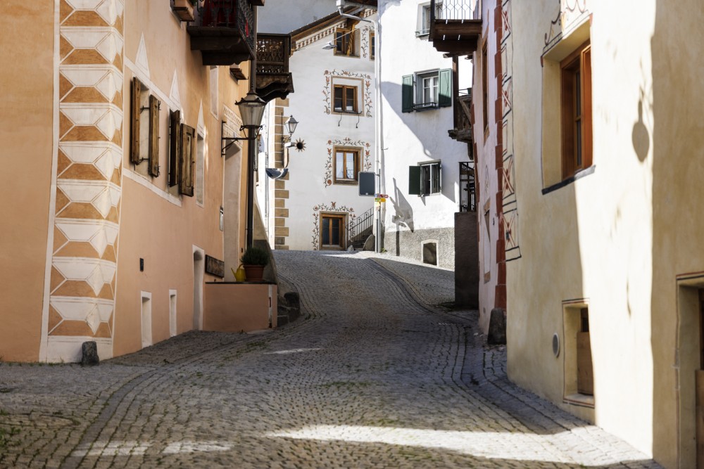 Dans les hautes vallées grisonnes, il faut parfois attendre longtemps avant que les chemins pédestres ne soient plus enneigés et que les fleurs poussent. Mais une fois qu’elles sont là, elles éblouissent par leur beauté. Vers fin mai ou début juin, les prairies se transforment en palettes de couleurs et il peut être difficile de quitter le sol des yeux pour regarder au loin. Le printemps est particulièrement grisant dans le Val Müstair, la pointe la plus orientale de la Suisse. Sans oublier que la région est depuis 2010 une réserve de biosphère de l’Unesco. C’est à Sta. Maria, le véritable centre de la vallée, que débute une randonnée qui permet de profiter des fleurs et de vues panoramiques. Depuis l’arrêt du car postal, sur la route principale incroyablement étroite, il faut revenir quelques mètres en arrière puis descendre sur la rive du Rom. Le chemin remonte le cours d’eau sauvage à travers des zones alluviales et sur des bancs de gravier avant de bifurquer à droite vers Craistas et Lü. La montée raide vers les hameaux de Valpaschun et Craistas passe heureusement par de magnifiques prairies fleuries. La randonnée se poursuit presque à plat le long du versant sud vers Terza sur une route goudronnée, puis une route forestière. De l’autre côté de la vallée s’alignent les sommets marquant la frontière avec le Val Venosta du Haut-Adige: Piz Minschuns, Piz Costainas, Piz Cotschen. Le restaurant de montagne Terza, avec sa belle terrasse panoramique, est idéal pour une pause. Vient ensuite une descente en lacets et à travers des pâturages à moutons jusqu’au village de Müstair, où le couvent bénédictin Son Jon, inscrit au patrimoine mondial de l’Unesco, vaut le détour. Le vieux centre du village tout en longueur compte de très belles maisons richement décorées de sgraffites.