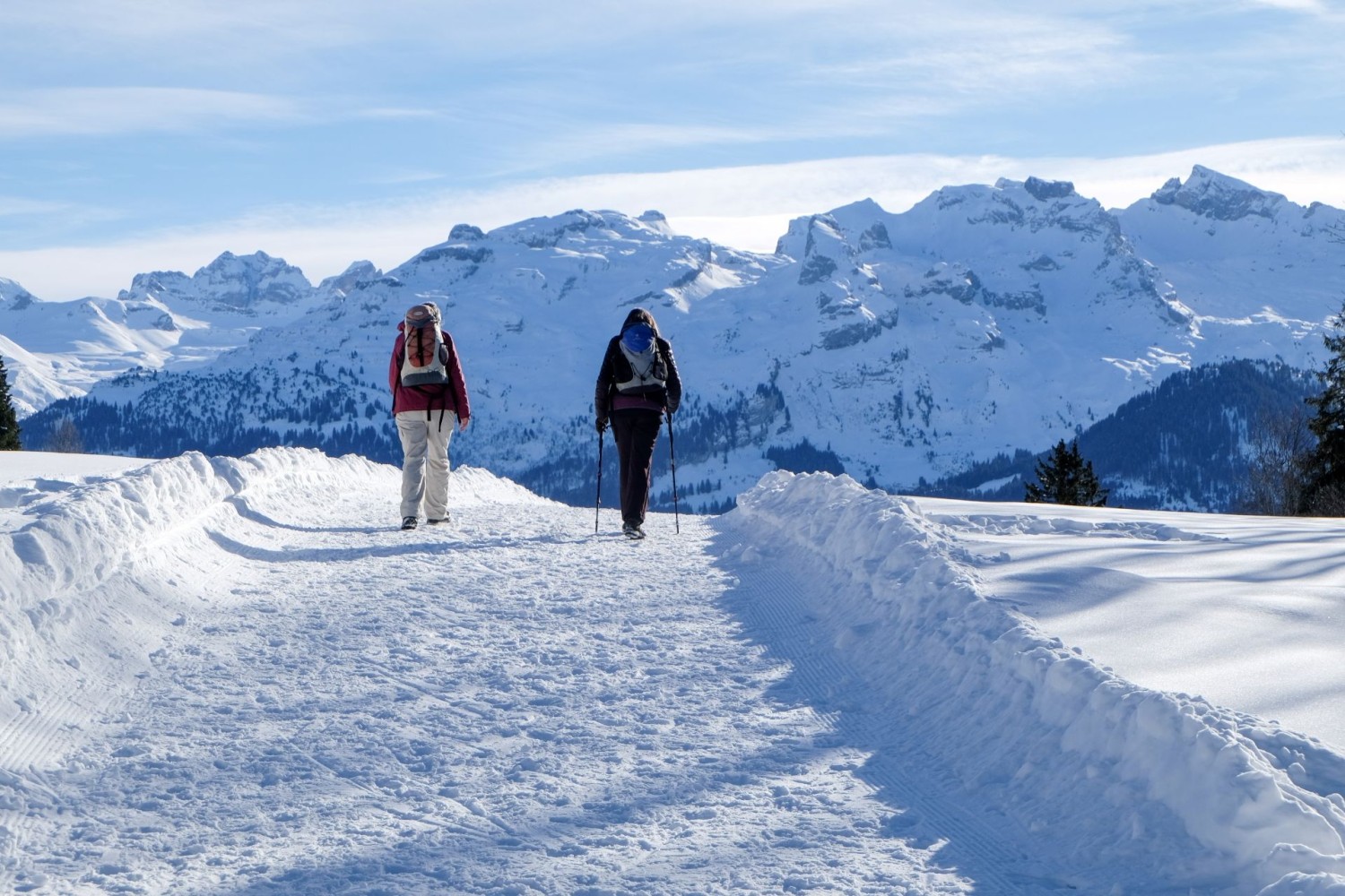 Cette randonnée hivernale offre aussi de belles vues sur les sommets de la région.. Image: Elsbeth Flüeler