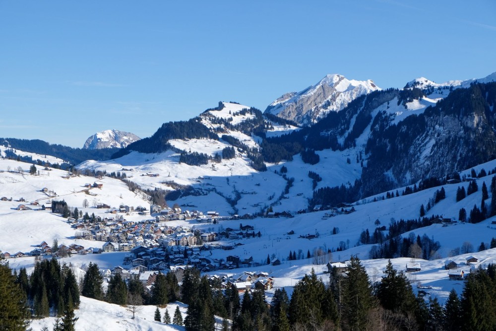 • La randonnée hivernale fait prendre de la hauteur tout en douceur. Vue sur Oberiberg.