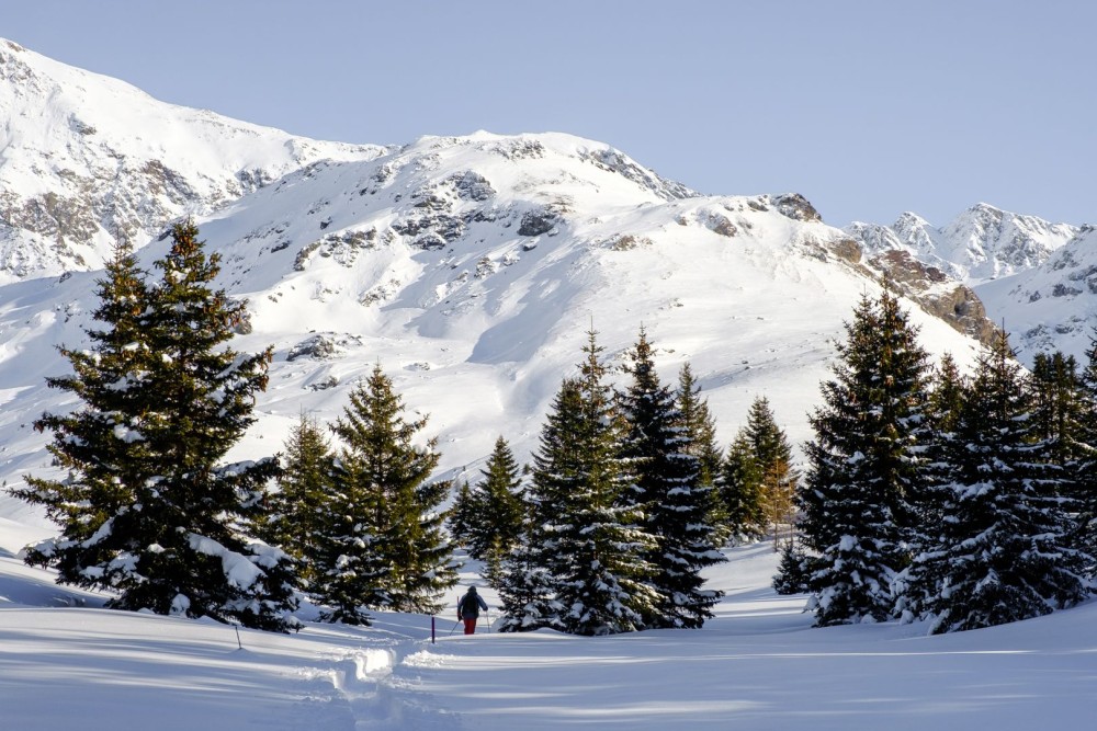 • La randonnée en raquettes vers l’Alp Flix commence dans le petit village de Sur.