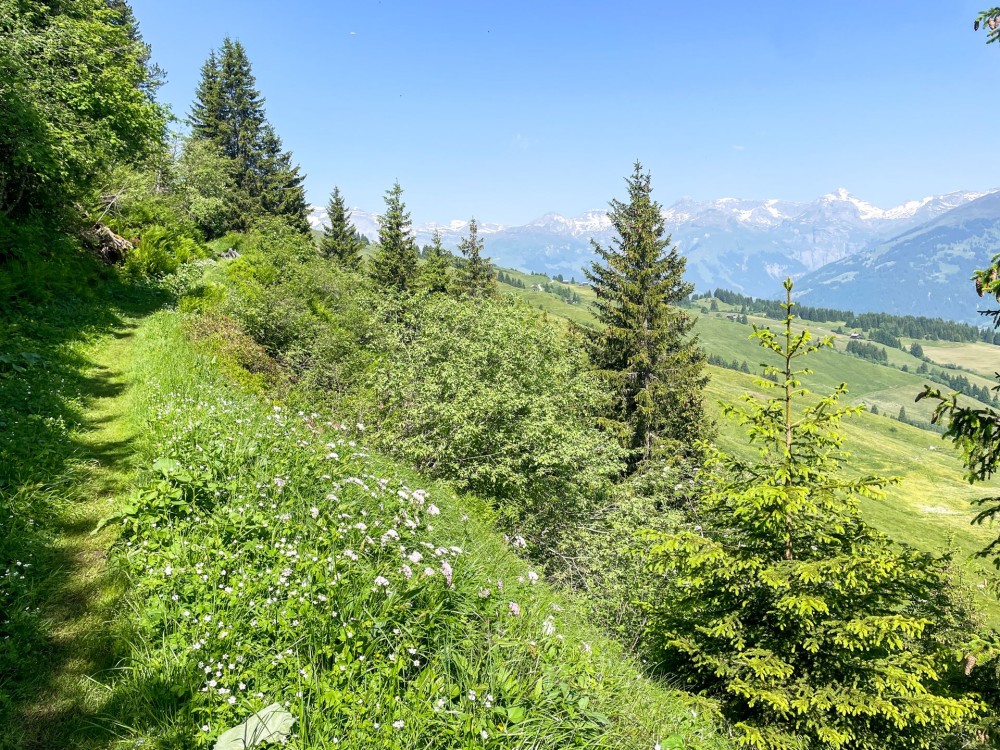 Le chemin longe la forêt Uaul da Sogn Carli.. Image: Rémy Kappeler