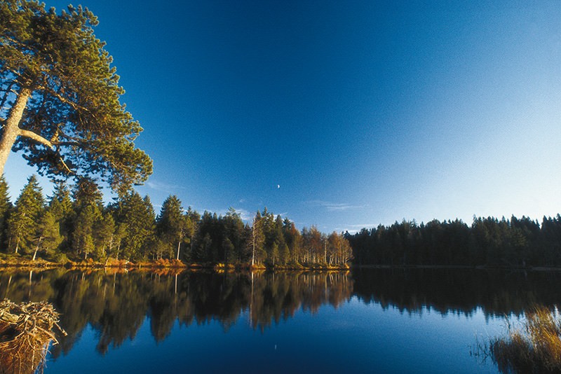 • Blick auf den Etang de la Gruère an einem Bilderbuchtag.