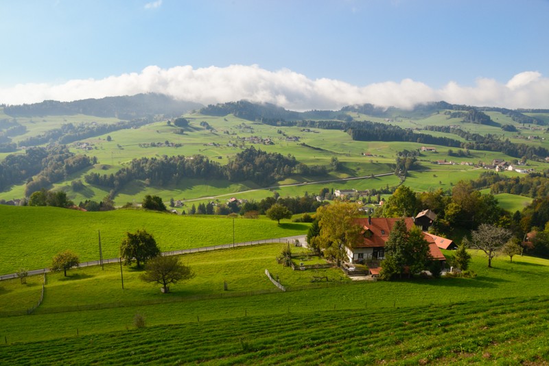 Fischingen est connu pour son monastère bénédictin. Une visite de l’église baroque s’impose, mais aussi de la chapelle consacrée à Sainte Ida (et qui renferme son tombeau) de Toggenburg. C’est aussi, du reste, l’une des étapes clés du chemin de Saint-Jacques en direction d’Einsiedeln. Notre randonnée débute juste sous le cloître, près du pont sur la Murg, et nous entraîne à travers champs par un chemin qui compte quelques brefs raidillons. En traversant le Chrüzhof, après Roopel (Rotbühl), on entendra peut-être la cloche de Buchegg, qui annonce à onze heures précises l’approche de midi. La randonnée se poursuit, pour une demi-heure environ, le long de la route peu fréquentée menant à Allenwinden: on y jouit d’un panorama splendide. A un endroit, on quitte le bitume pour rejoindre un petit sentier parallèle à la route. Le week-end, c’est un lieu de promenade très apprécié des motards et des cyclistes. A Allenwinden, hélas, le «Gasthof zum Kreutz» est fermé jusqu’à nouvel ordre. Il est donc recommandé d’emporter suffisamment de provisions. Après la ferme Holestei, il faut gravir un chemin de forêt à nouveau un peu raide jusqu’au sommet du Groot. Près des bancs, un panneau révèle qu’il s’agit de l’endroit le plus haut du canton de Thurgovie. La vue sur l’église d’en face et l’Iddaburg est époustouflante, tout comme le panorama sur la Thurgovie, au nord, et le massif de l’Alpstein, au sud. On redescend vers Hell par un agréable chemin forestier. En traversant des prairies printanières, on découvre d’abord une statue de Marie, puis, peu après, la romantique chapelle de forêt dédiée à Sainte Ida. Après une brève pause, on poursuit la descente en direction de la ferme Neuschüür. Sur la route qui y mène, on se rapproche du cloître de Fischingen, où le bus nous ramène vers Wil.