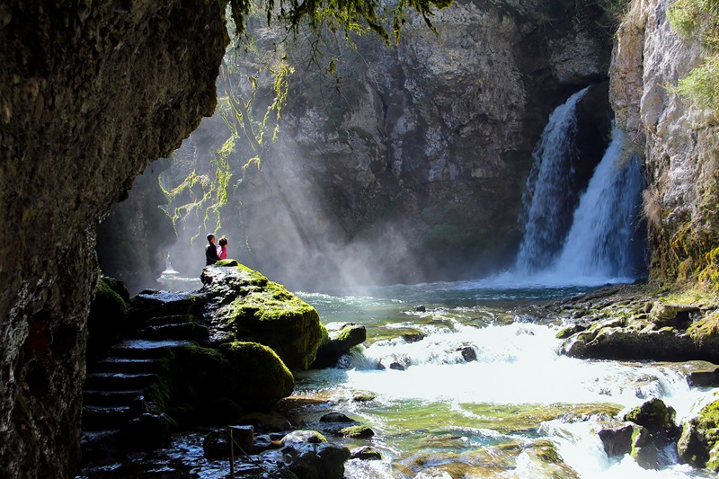 • La spectaculaire cascade de la Tine de Conflens. Photo: Andreas Sommer