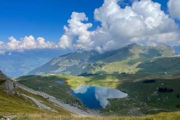Le départ de cette aventure se situe dans le charmant hameau de Kemmeribodenbad, dans le canton de Berne, facilement accessible en voiture ou en transports publics. Dès les premiers pas, on franchit la frontière du canton de Lucerne et on emprunte un large chemin blanc, qui s'élève doucement au pied de la Schratteflue.