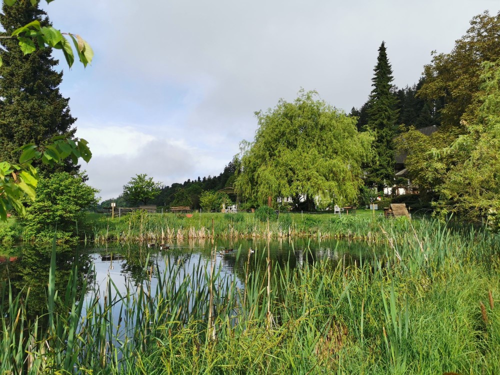 Verpflegung aus dem Rucksack. Im Restaurant Bürgisweyerbad Kaffeehalt.