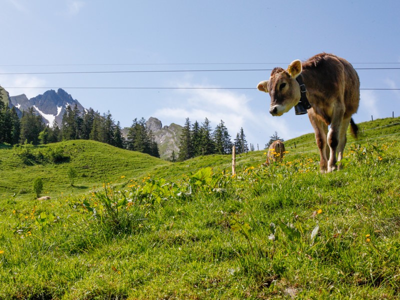 Die Stockhütte ob Emmten ist für Bergtouristen sehr gut erschlossen. Steigt man aus der Gondelbahn, tritt man auf eine grosse Sonnenterrasse. Auch für die Unterhaltung ist reichlich gesorgt: Linkerhand ist ein Spielplatz eingerichtet, um rasant nach Emmten herunterzufahren, stehen Bikeboards zur Miete bereit und das Goldi-Maskottchen, das auf familienfreundliche Angebote in der Region hinweist, grüsst von der Wand. Im Wald gibt es eine Bogensafari, wo man mit Pfeilen auf täuschend echt aussehende Hirsche zielen kann. Zur Klewenalp führt auch ein Kinderwagen- und Rollstuhl-tauglicher Weg, mit zahlreichen Möglichkeiten, unterwegs einzukehren: vom betriebsamen Berggasthaus über das Tipi-Dorf mit einfachem Alpbeizli, bis zu Picknickplätzen mit Feuerstelle, Tischen und Bänken. Ein erster solcher Picknickplatz befindet sich auf der Twäregg. Nach gut 200 Höhenmetern Anstieg durch den Wald tritt man hinaus auf dem kühn vorstehenden Sporn. Hier entfaltet sich vor dem Blick die überwältigende Kulisse des Schwalmis: eine mächtige Felswand, schroff, wild und wunderschön, Natur pur. Rechterhand am Horizont erkennt man das «Satteli». Eine gute Stunde später führt die Wanderung über diesen Übergang. Damit taucht man ein in das rauhere und naturbelassenere Hinterland der Innerschweizer Berge. Flach zieht sich der Weg hinüber zur Brisenhütte des SAC, Ausgangspunkt für abenteuerliche Gratwanderungen oder die Tour auf den Brisen. Der Weg abwärts führt steil und schmal über blühende Alpwiesen. Man glaubt, die Kraft spüren zu können, die moderne Mystiker an diesem Ort gemessen haben wollen. Seit dem Bildersturm im 16. Jahrhundert ist Niederrickenbach ein Wallfahrtsort. Im Kloster Maria-Rickenbach lebt eine Gemeinschaft von 15 Benediktinerinnen.