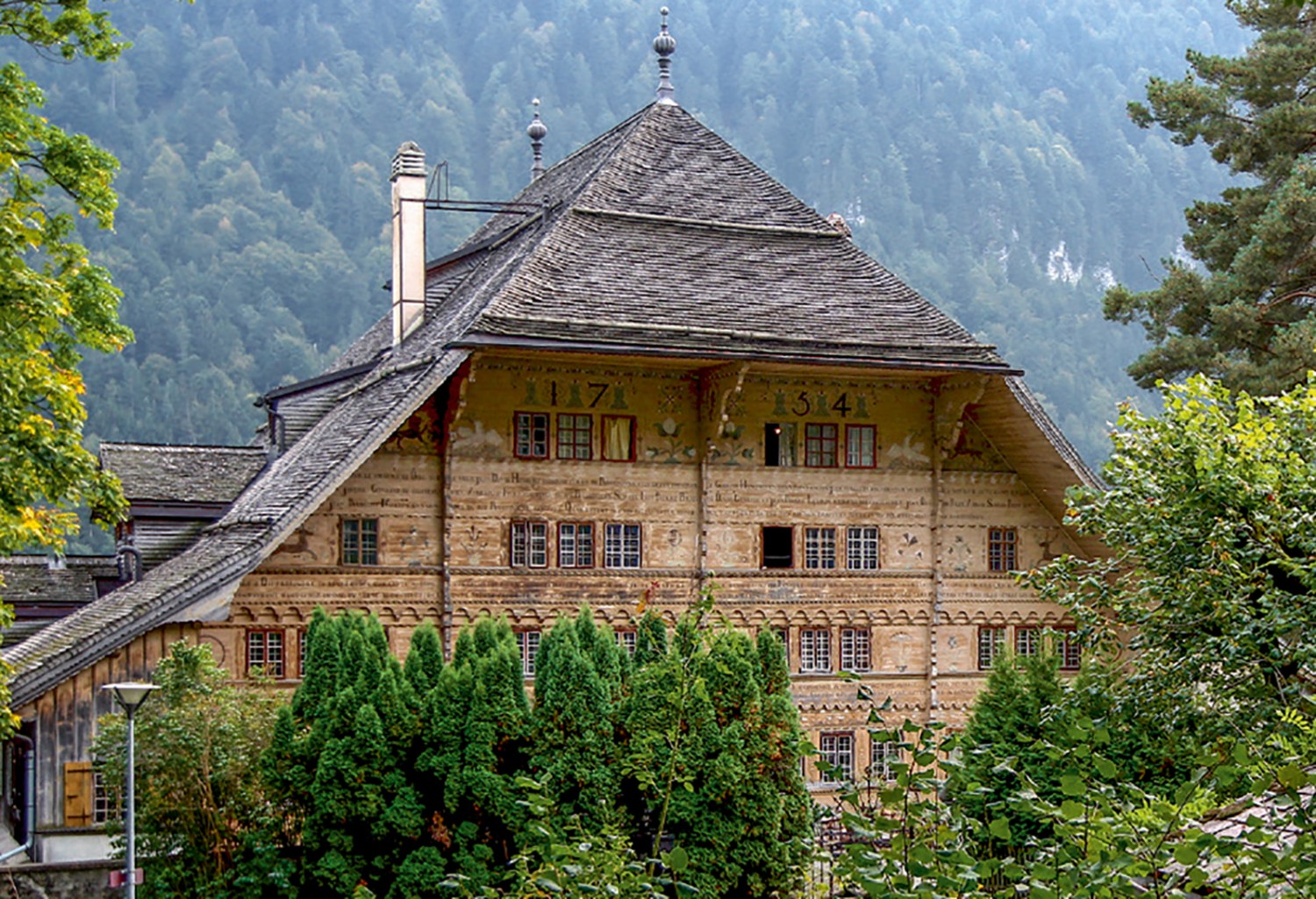• Das kunstvoll mit Schnitzereien verzierte Grand Chalet in Rossinière. Bild: Clair de Lune