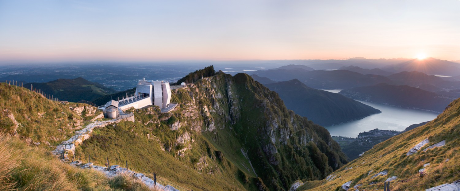 • Il «Fiore di Pietra» è il nuovo simbolo del Monte Generoso. Il sentiero che porta in vetta (a sinistra) è stato ampliato di recente. Foto: Monte Generoso, Enrico Cano