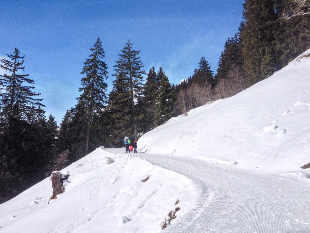 Der Anstieg bringt einem durchaus ins Schwitzen. Er ist aber auch für Kinder gut machbar. Bild: Claudia Peter.