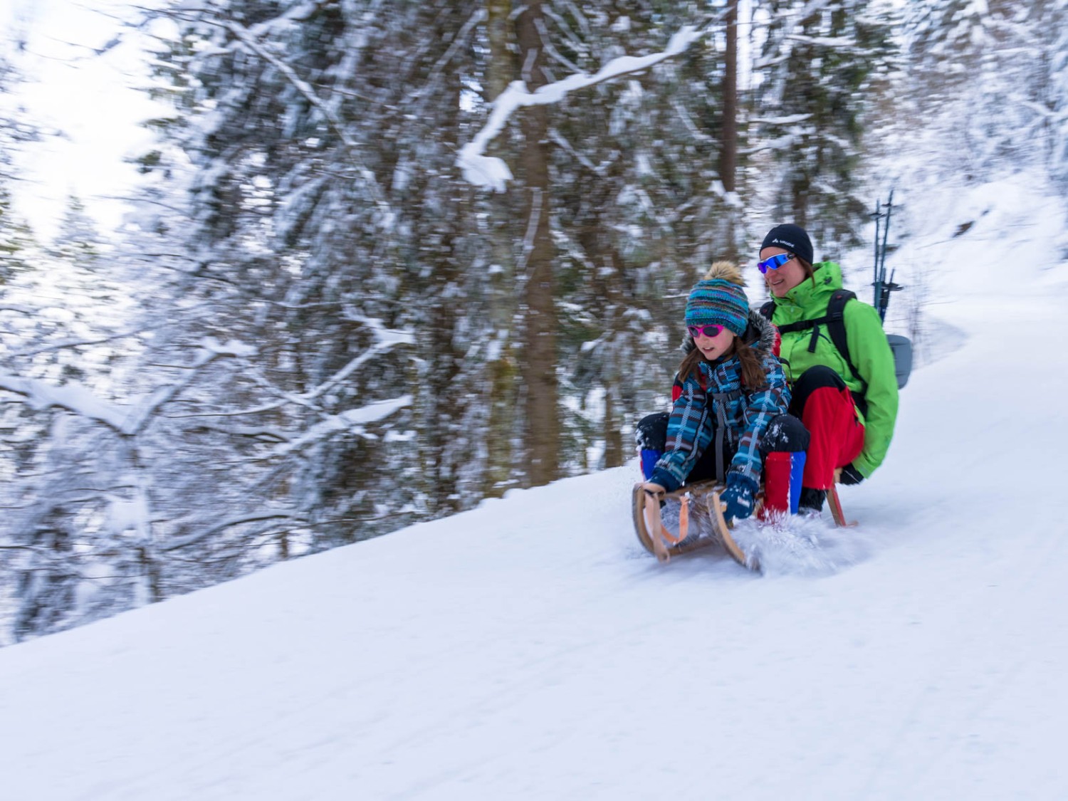 Wir nehmen den Weg, der weiter Richtung Ebnet und dann zum Stäckenmattboden führt. Der Schnee knirscht unter den Schneeschuhen, die man zum Beispiel an der Gondeltalstation mieten kann. Linker Hand führt ein Pfad empor zur nahe gelegenen Alp Tritt, die bei schönem Wetter im Beizli Käsespezialitäten anbietet.
