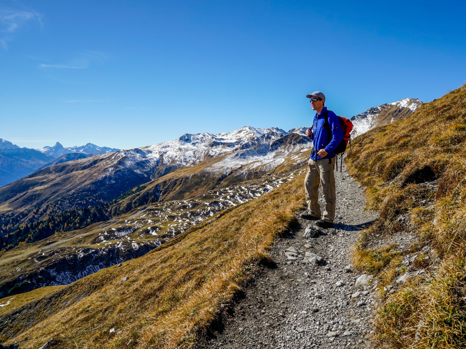 • Peu avant le Col de la Strela avec, en toile de fond, le Piz Ela. Photo: Fredy Joss