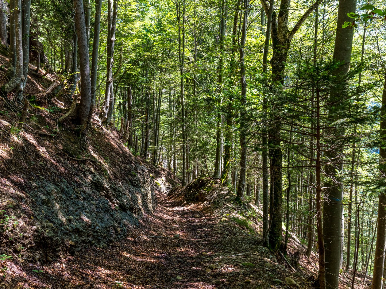 Bitte die Badehose einpacken, denn diese Wanderung führt an den Gräppelensee im Toggenburg, einem regelrechten Juwel. Die Route kann nach Belieben verlängert und abgekürzt werden. Losgewandert wird in Unterwasser, von wo es zumeist über Wiesenwege gleich zu Beginn in die Höhe geht. An einem warmen Tag ist es empfohlen, frühzeitig anzufangen, denn in den ersten anderthalb Stunden hat man fast keinen Schatten. Bei Halden ist für Familien mit Kindern der erste Halt auf dem Spielplatz angesagt. Beim nächsten Wegweiser zum Gräppelensee unbedingt den Weg via Ches wählen, ansonsten geht man auf der Strasse. Ist ein wenig Höhe gewonnen worden, hat man endlich eine tolle Aussicht auf die Churfirsten, den Säntis und den Wildhuser Schofberg, bevor man sich im kühlen Wald wiederfindet. Bald ist der See erreicht – was für ein friedliches Fleckchen Erde! Ein Steg lädt zum Baden ein und rundherum finden sich eingezäunte Picknickplätze mit Feuerstellen. Hier lässt es sich gut verweilen. Wer Lust hat, bleibt länger und wandert via Risi nach Alt St.Johann oder Unterwasser hinunter. Die anderen überwandern den Windenpass. Vom See aus geht es zunächst sanft, dann immer steiler den Berg hinauf. Der Weg ist nun zum Bergwanderweg geworden. Bei Hinterwinden lockt eine letzte Erfrischung: auf der Alp befindet sich ein kleiner Selbstbedienungsladen, bevor die letzten ca. 100 Meter überwunden werden müssen. Auf dem Pass geht es dann ein paar Meter nach links, in Richtung Alpli, danach geht es rechts sehr schmal und steil wieder hinunter. Da sich der Weg auf der Schattenseite und im Wald befindet, ist er recht rutschig. Für Hunde und kleine Kinder ist dieses Teilstück nicht geeignet, da man zuweilen auch die Hände benutzen muss. Schnell sind so die Höhenmeter wieder verloren und man findet sich bei den Ställen wieder. Wer noch weiterwandern will, biegt beim ersten Stall rechts ab und geht zur Schwägalp. Die anderen passen bei Dreckloch auf: dort ist ein Stück Bergwanderweg über die Weide markiert, wo man abkürzen kann. Nun ist es noch eine gute halbe Stunde bis zur nächsten Bushaltestelle Ennetbühl, Bernhalde, wo man entweder in Richtung Schwägalp oder Nesslau fährt.
