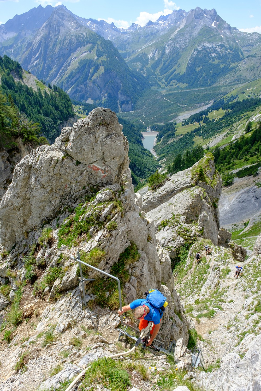 Poteu des Etales: die kurze Schlüsselstelle im Abstieg nach Derborence..