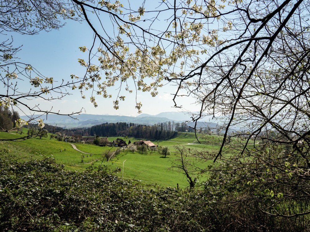 Blühende Kirschbäume und verträumte Dörfer auf der Südseite des Albis. Bild: Reto Wissmann.