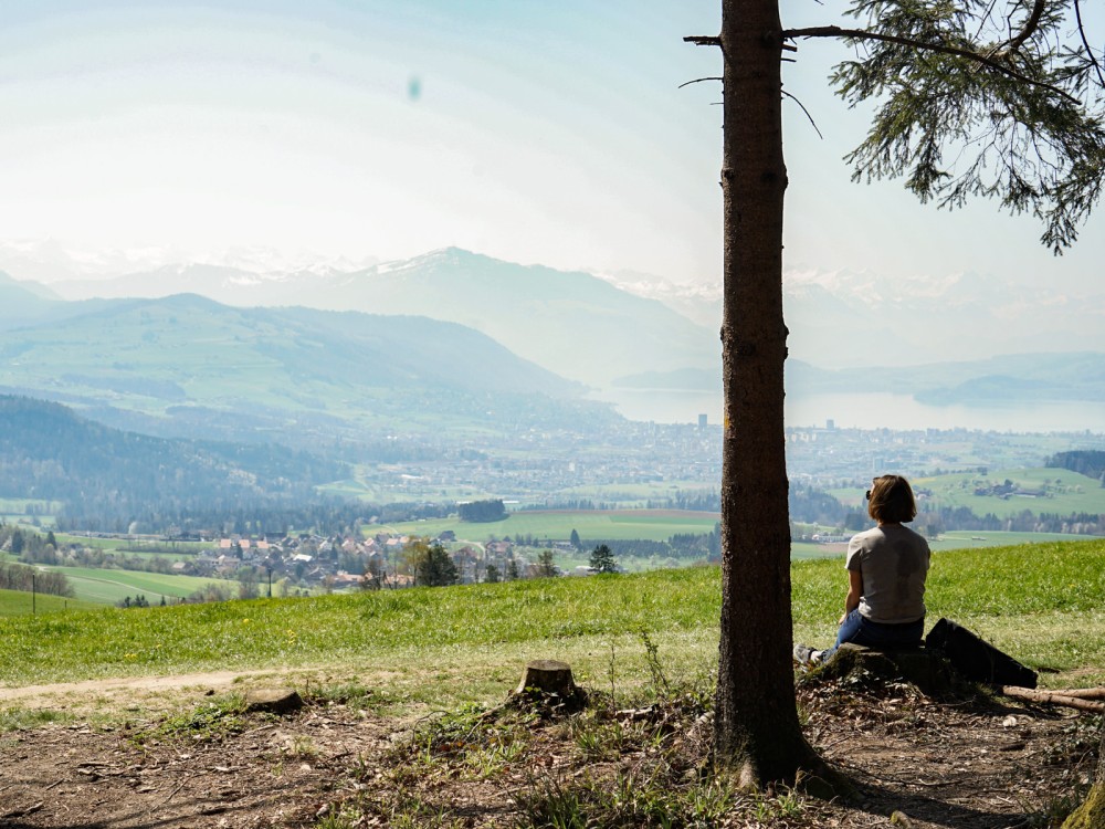 • Aufstieg von der Albispasshöhe zur Hochwacht mit Aussicht auf den Zürichsee. Bild: Reto Wissmann