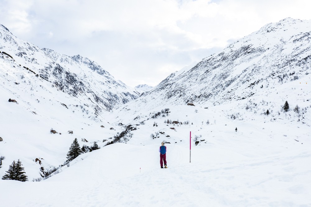 La regione sciistica più settentrionale del Ticino con la maggior sicurezza di innevamento offre anche la possibilità di effettuare escursioni con e senza ciaspole. Il percorso lungo la Val Pozzuolo si snoda perlopiù lontano dalle piste da sci e non presenta grandi dislivelli. Da Pesciüm, stazione a monte della funivia, si passa davanti all’edificio in direzione dello skilift per bambini e si prosegue lungo la larga pista per principianti verso ovest. In poco tempo si abbandona l’area sciistica. Dopo ogni nevicata, il sentiero escursionistico invernale viene preparato con l’ausilio del gatto delle nevi. I pali viola e i pannelli rosa vivo indicano la direzione da seguire. Il sentiero, caratterizzato da piccole discese e salite, attraversa l’aperta campagna, continua nel bosco e conduce all’alpe Cascina Nuova, dopodiché scende leggermente verso la pineta e si addentra nella Val Pozzuolo su un cammino forestale. Da qui si gode di una vista maestosa sulla regione del San Gottardo. Un piccolo giro ad anello forma l’estremità del percorso. Basta quindi riprendere lo stesso cammino per tornare indietro a Cascina Nuova e Pesciüm. Rispetto ai sentieri escursionistici invernali di altre regioni del Ticino, quello sopra Airolo presenta un grande vantaggio che può tuttavia rivelarsi anche uno svantaggio: è situato all’ombra di alte montagne e, quindi, è sicuramente ben innevato. In pieno inverno non è praticamente mai esposto al sole; solamente a partire da metà gennaio i primi raggi fanno capolino a Pesciüm un attimo prima di mezzogiorno per poi scomparire poco dopo dietro il Pizzo di Mezzodì e il Poncione di Vespero. La parte principale del tracciato rimane all’ombra ancora per diverse settimane. Da metà febbraio però il sole splende anche lì.