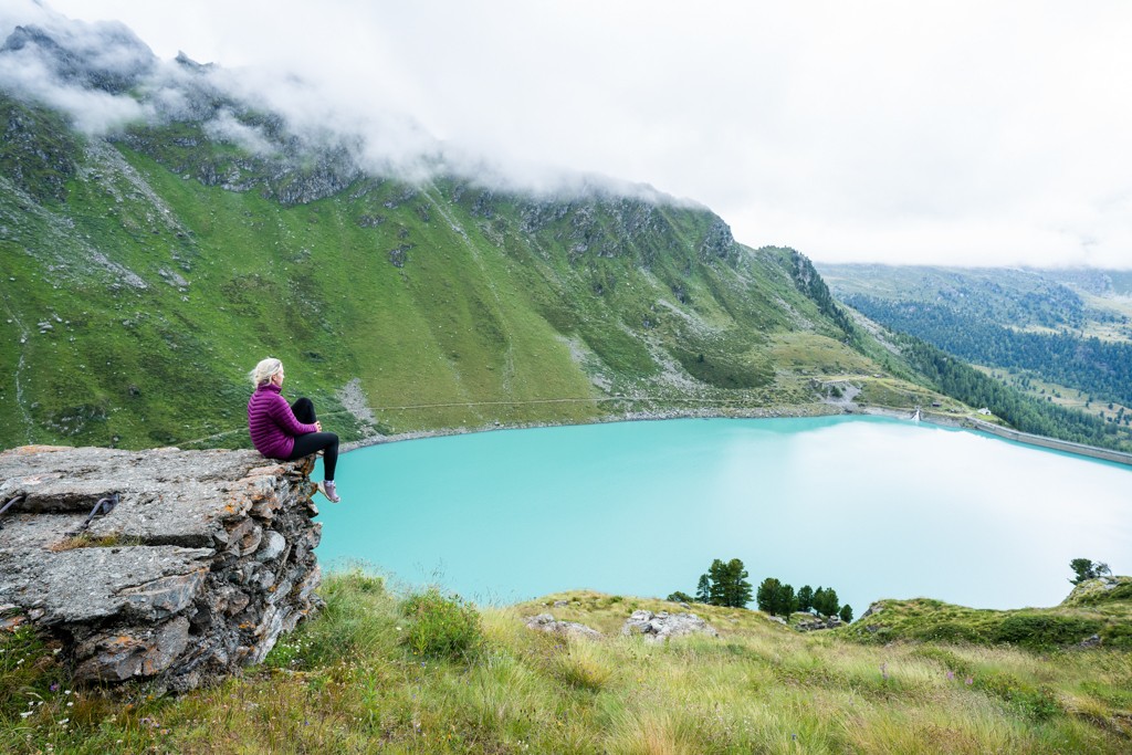 Kurz vor dem Abstieg noch einmal ein Blick auf den strahlenden See Lac de Cleuson. Bild: Wanderblondies.